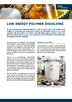 The LEPD technology is an innovative, patented process for dissolving and blending viscosity index improvers (VI improvers) into base oils.