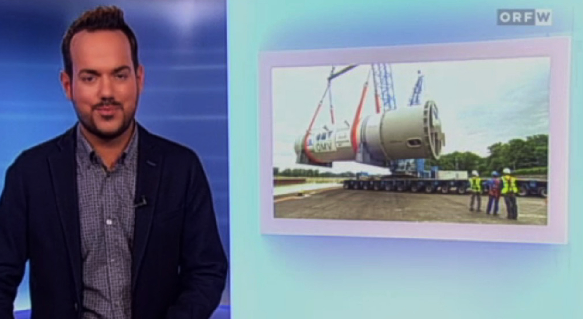 The Austrian television network reported on the installation of the 380-ton apparatus for the desulphurisation plant at the Schwechat refinery in Port Albanians.
