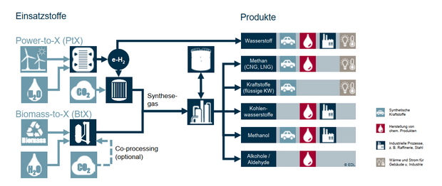 - Einsatz alternativer Energieträger (PtX, BtX, Bio-Energie)